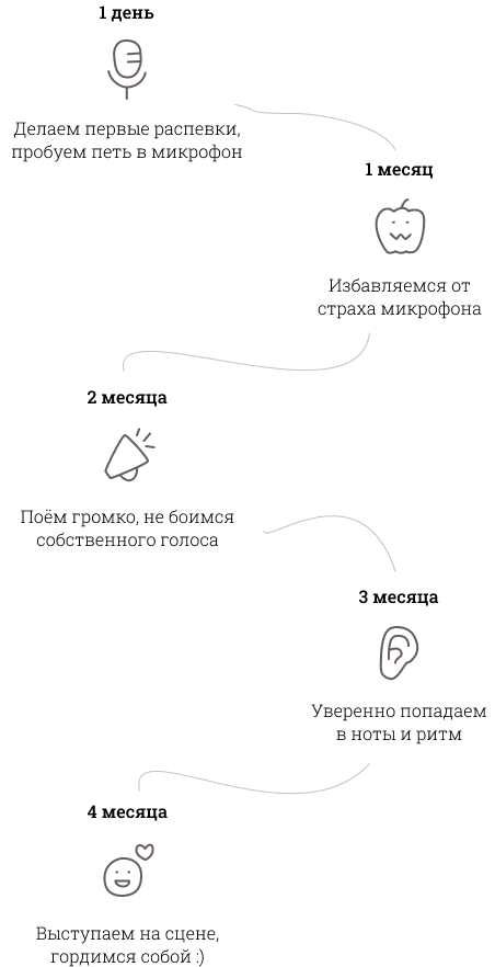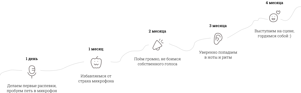 Постоянно прохожу обучения у лучших мастеров вокала России и не только: Ольга Синяева (г. Москва), Дарья Манакова (г. Санкт-Петербург), Этери Бериашвили (г. Москва), Карина Купер (г. Лос-Анджелес)